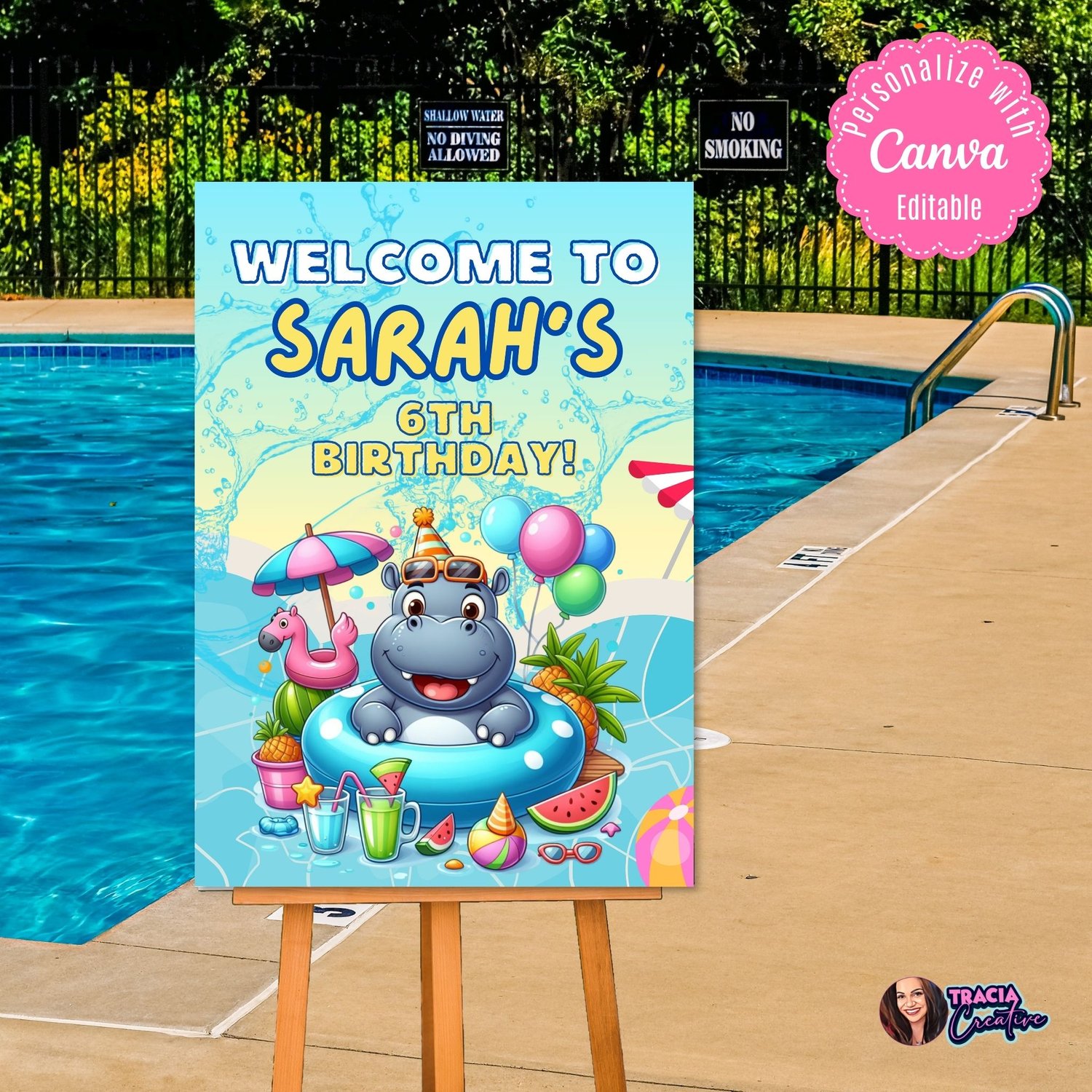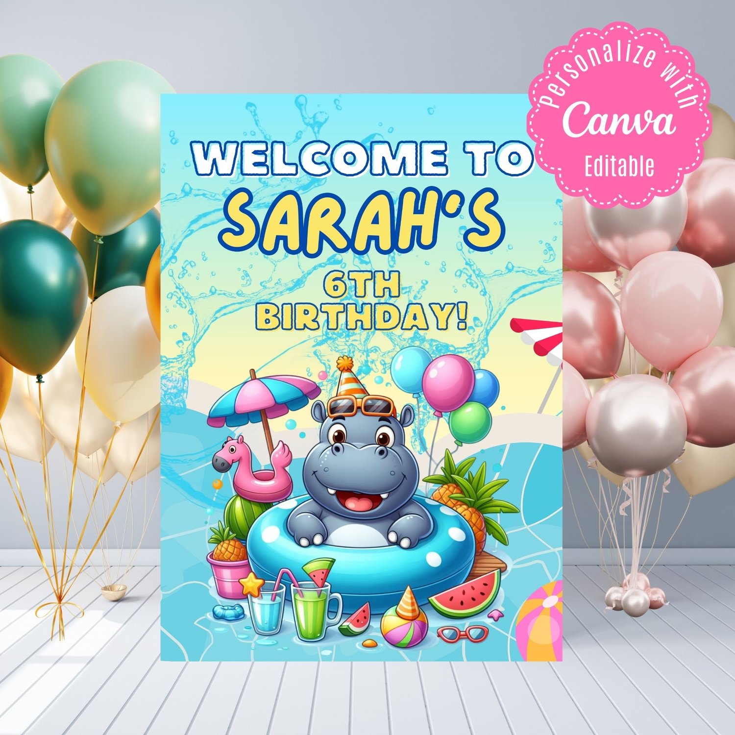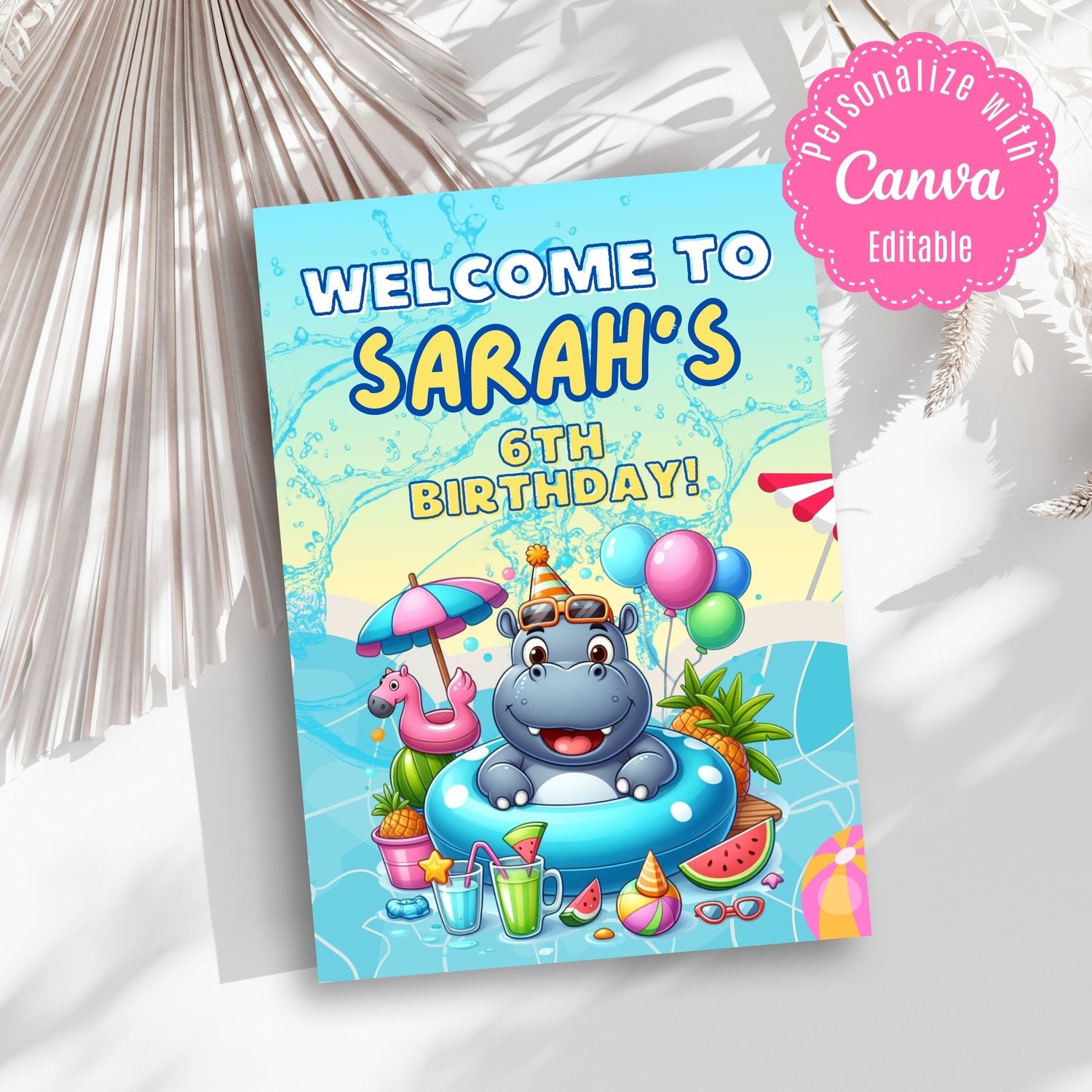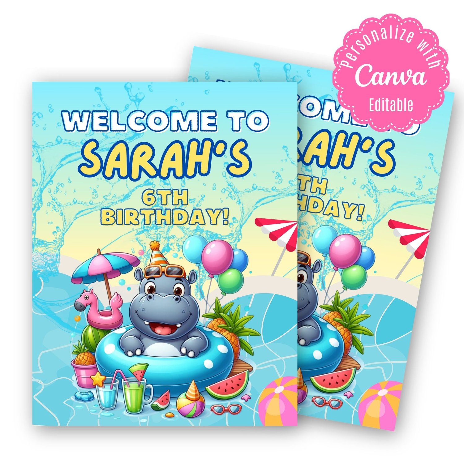 Editable Canva Pool Birthday Party Welcome Sign - Digital Download