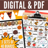 Your students will be engaged with this fun bingo game as they learn to identify L'action de grâce vocabulary words in French. These 3 sets of 40 unique playing boards will provide each student with their own set of French Thanksgiving vocabulary words to review. This bingo game is digital on Google Slides and printable. This set also includes cue cards for the teacher to make playing a breeze! This BINGO game set includes 3 different games: a word board, a word + pictures board, and pictures only board to vary how you play!