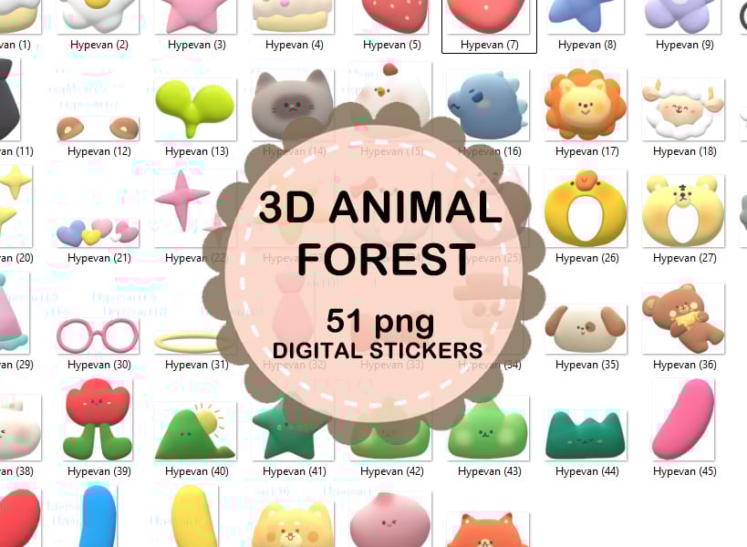 Bring the adorable world of Chiikawa to your digital space with this collection of 52 high-quality PNG stickers! Featuring super cute 3D Forest animal characters, this pack is perfect for decorating your planners, journals, or creative projects with endless cuteness.
