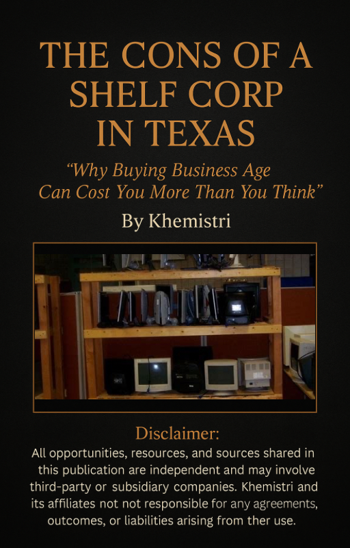This powerful, no-fluff guide exposes the real risks of buying shelf corporations in Texas. From legal liabilities and tax traps to fake credit claims and failed certifications — this ebook walks you step-by-step with due diligence tips.