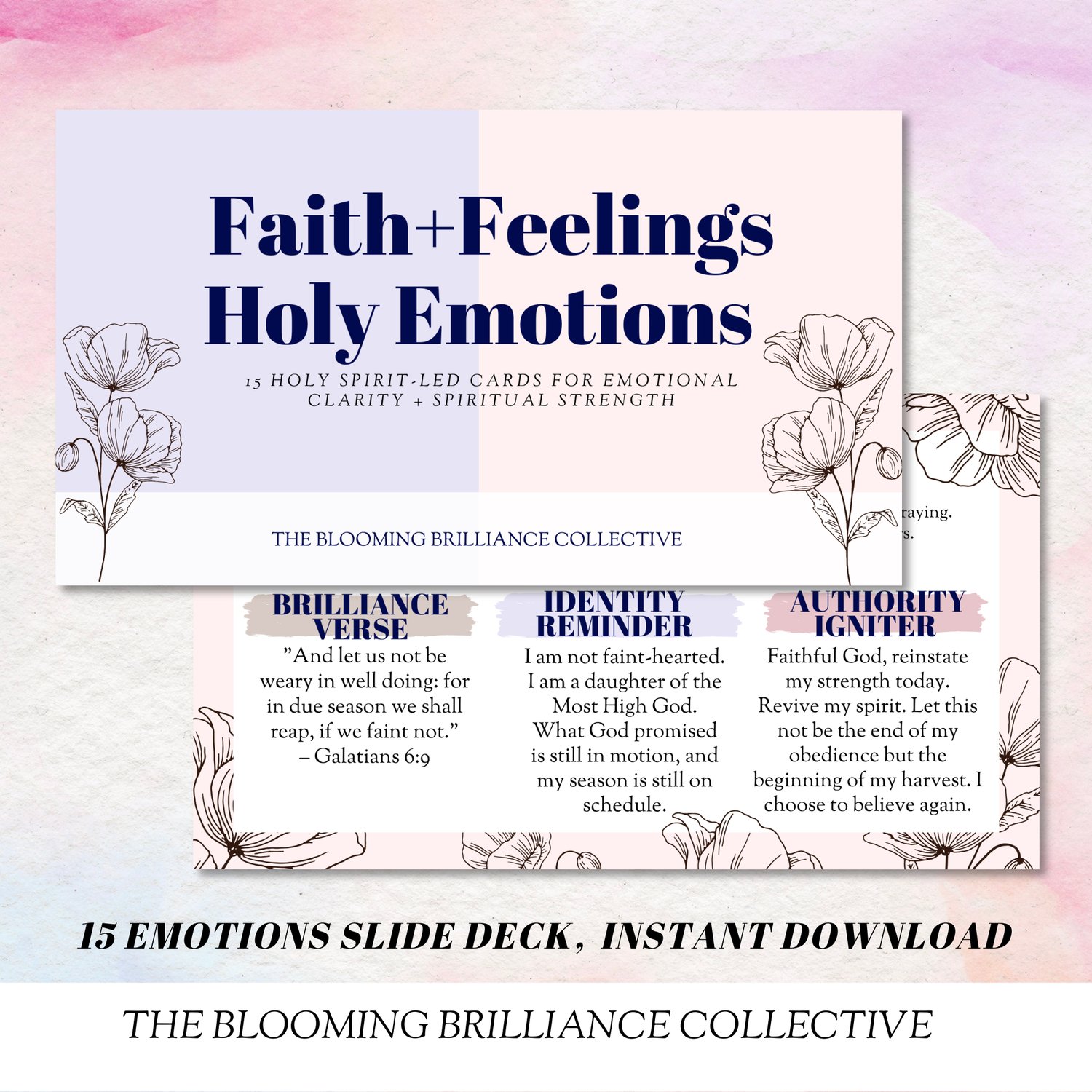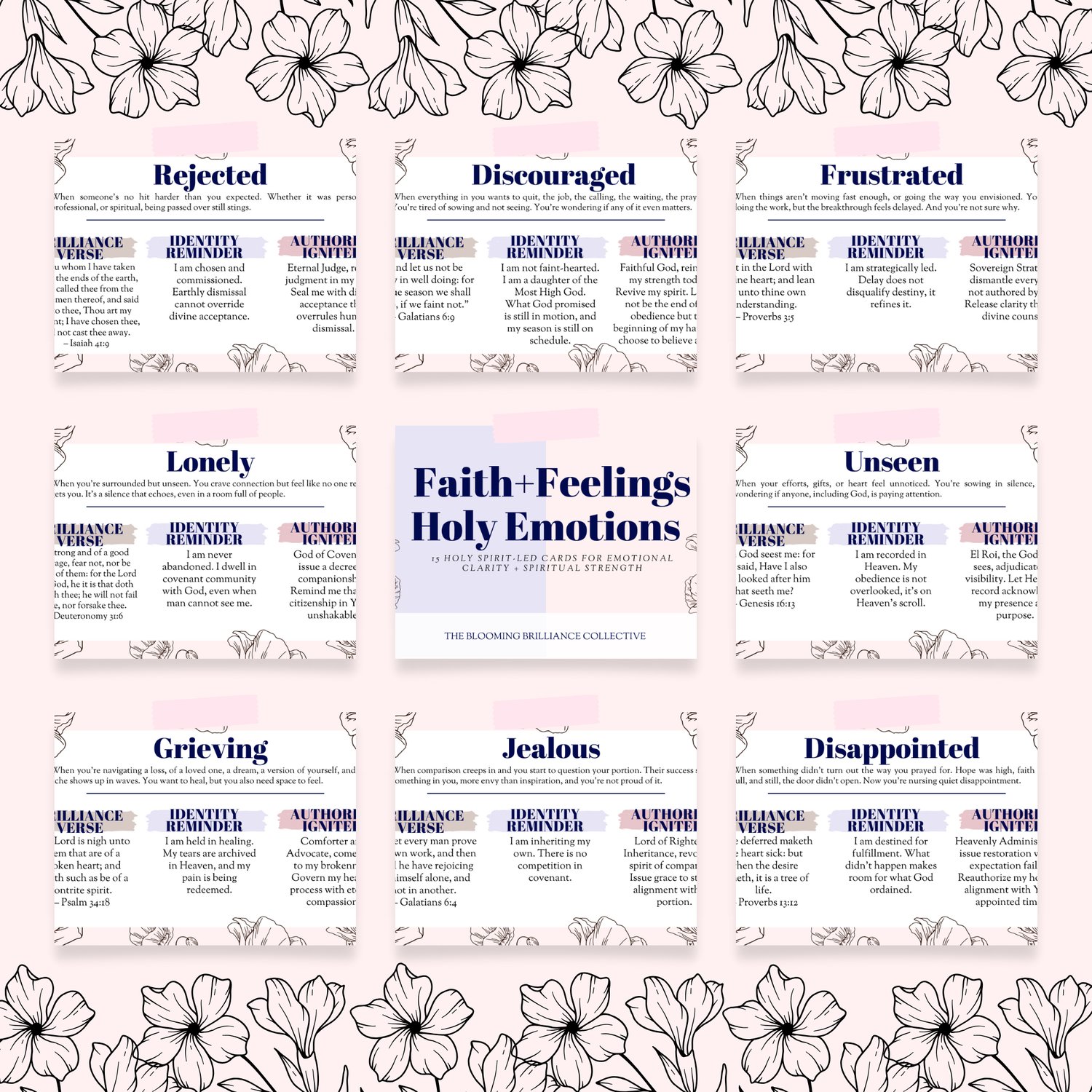 Inside, you’ll find 15 printable cards, each designed to help you process your emotions with truth and authority. Perfect for journaling with the Faith+Feelings 7 Day Journal, devotionals, or quiet moments with God.