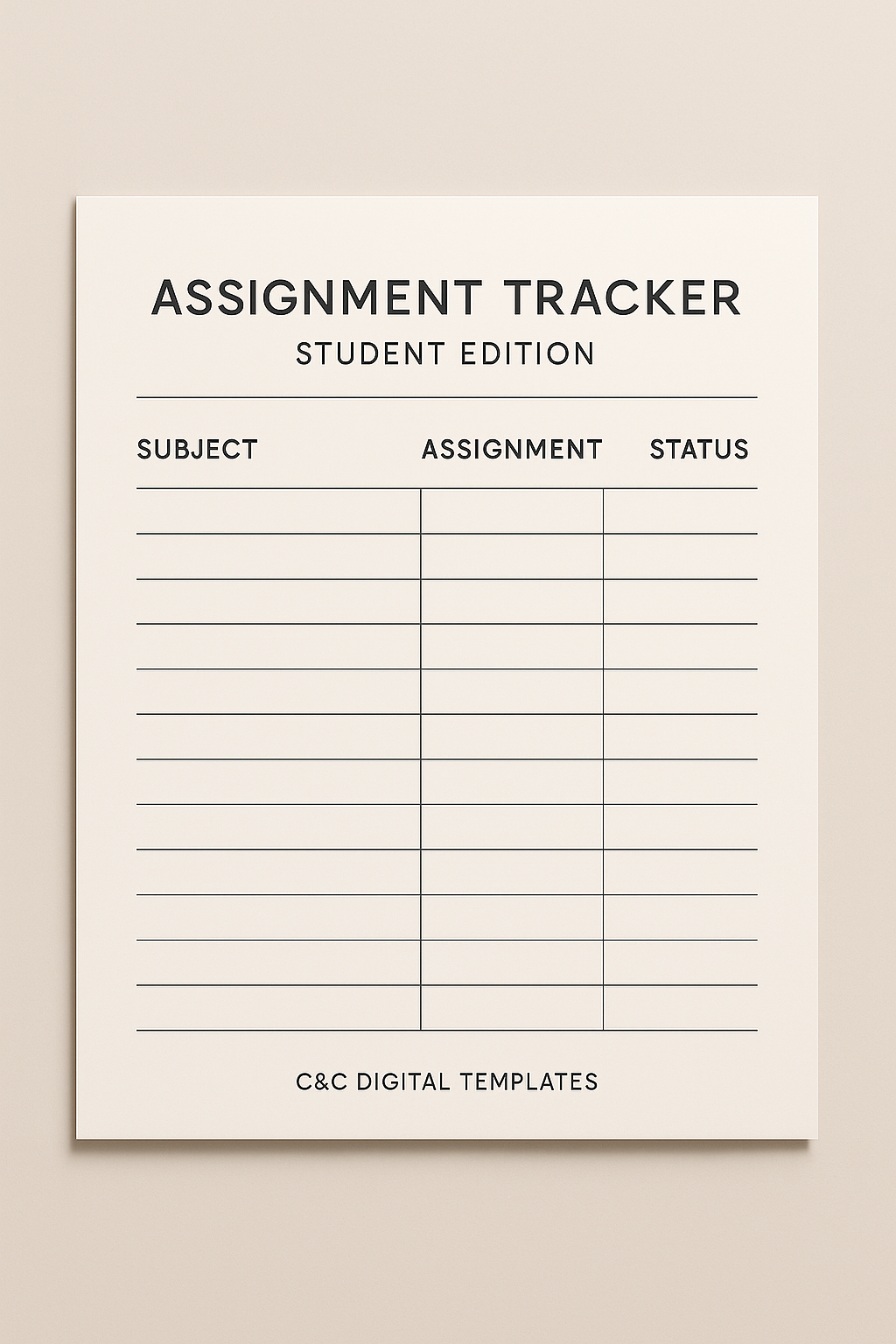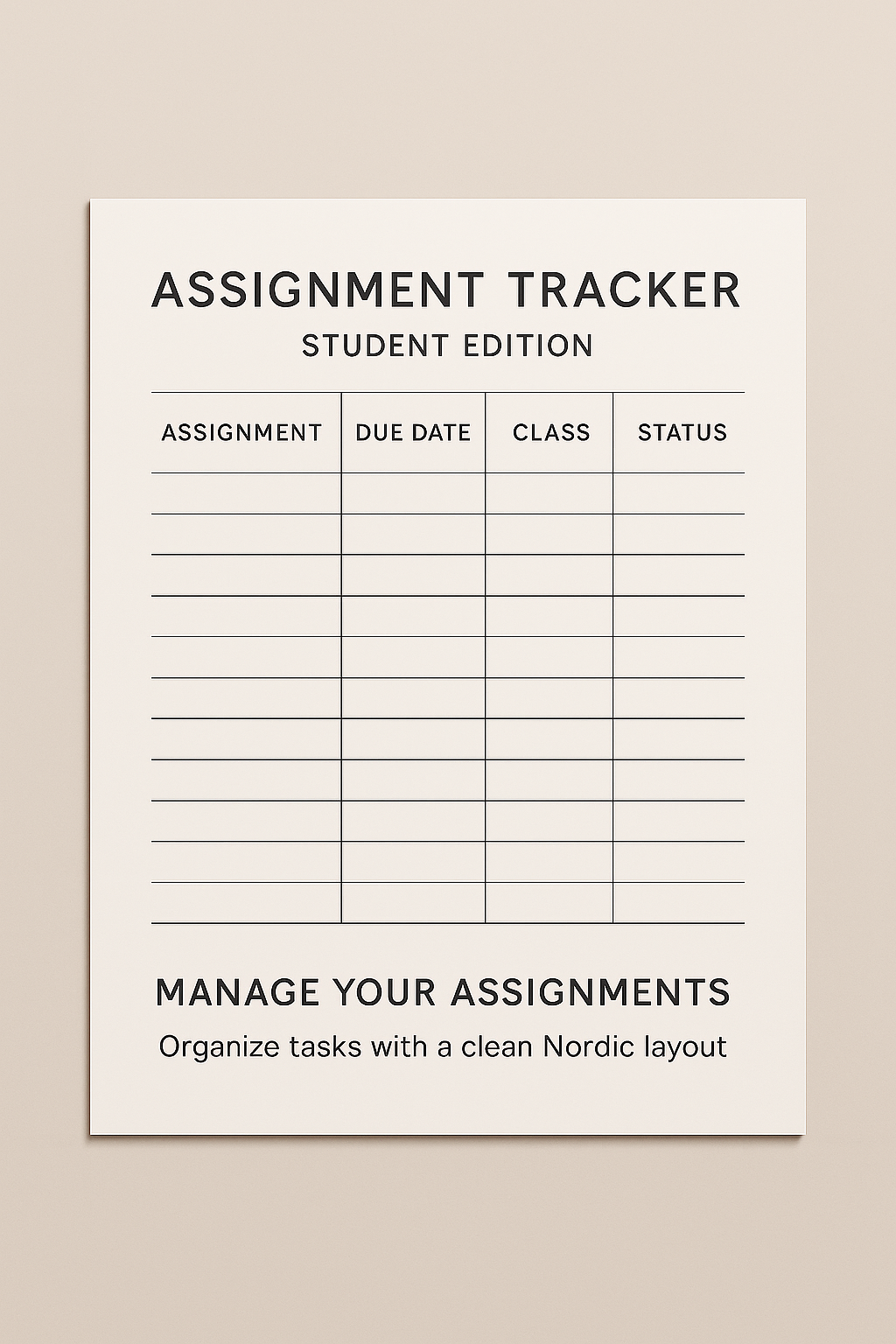 Stay organized, focused, and ahead of every deadline with this Minimal Nordic Assignment Tracker – Student Edition.
