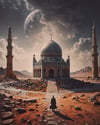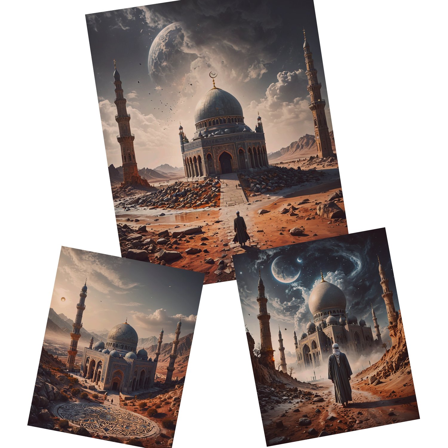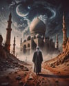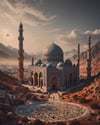 This series of AI-generated art blends mysticism with architectural grandeur, portraying mosques standing proudly in otherworldly deserts under surreal skies. The glowing crescent moon, vast mountains, and cosmic energy represent a connection between the earthly and divine. Each mosque feels like a sanctuary amid the vastness, symbolizing peace and spirituality, with dreamlike skies filled with swirling galaxies and towering minarets. The fusion of desert landscapes with ethereal elements mirrors the boundless spiritual journey that transcends time and space.