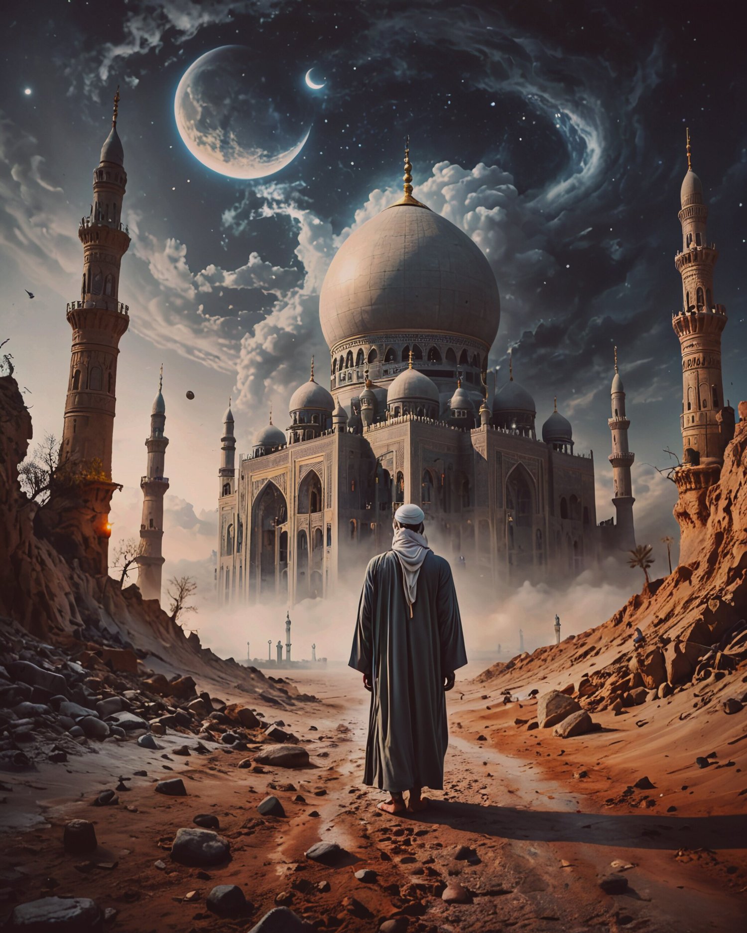 #AIart #celestialmosques #cosmicarchitecture #desertdreamscape #surreallandscape #spiritualjourney #cosmicsky #mysticalmosque #dreamlikemosque #etherealdesert #fantasyarchitecture #mosqueinnature #Islamicart #digitalfantasy #scifimosques #crescentmoon #spiritualsanctuary #cosmicenergy #architecturalfantasy #futuristicmosque