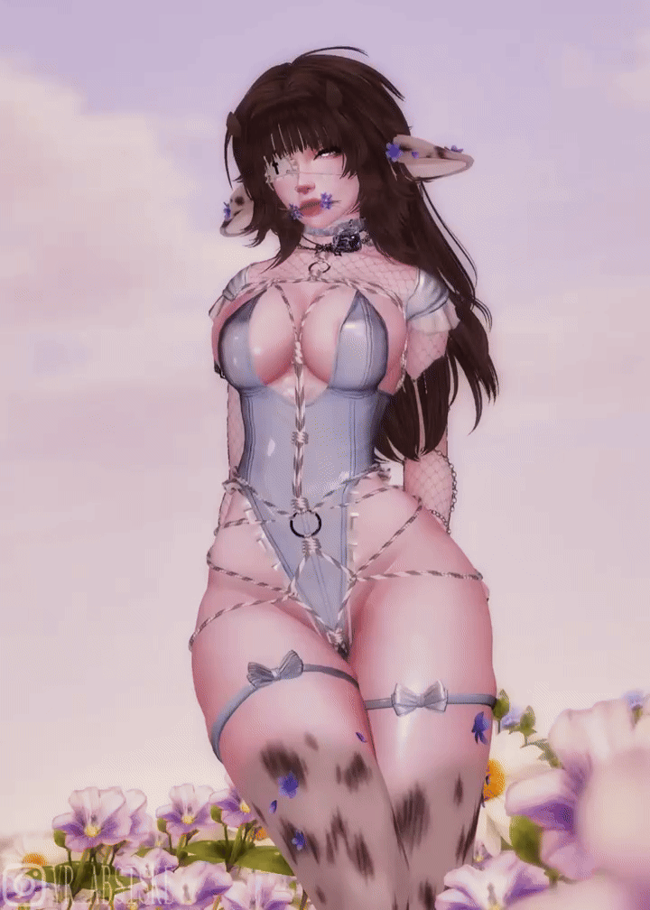 Body: zinpia (edits from Kirisa/Remys/Mare) / Body & Head Texture: ying.vr & yang.vr / Muscle Normals: ivycreates / Tattoos: riggatony / Vitiligo COMISSION: hussy. / Eye Texture: jvliette / Head, Layered, Raven, Madam: nessyy. / Fishnet, Jacket, Tank Top, Corset Skirt, Skirt, Panties, Push Up Bra, Lace Stockings, Arm Belt, Sleeves, Arm Chain, Necklace: ssukiii / Bodysuit, Floral Set, Tall Heels, Arm Frills, Glasses, Milk: milkymutt / Dress, Virgin Destroyer Set, Bow Choker, Draped Necklace, Collar, Rope Harness, Chucks: thethiccwitch / Bow Set & Spine Piercing: sicky. / Bow Heels:Â virtualspice / Ribbon Heels & Garter: miriaaam / Boots: jinxiewinks / Eyepatch: xero3d / Pearls: smolhysteria / Atlys & Bun: navv. / Hime: saltynoodlez / Ponytail: ressonae / Cow Set: dacozygremlin / Showcase: Bentai & DDYStudios / Photos: Hellcat, Absiske, MeltedSlushie / Toggle Showcase: marechan