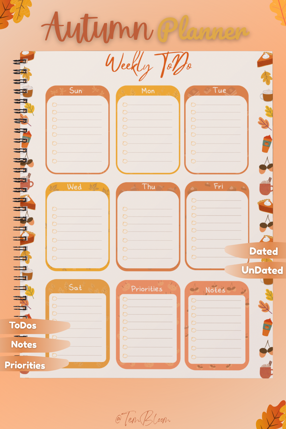 - Weekly To-Do (Dated & Undated): Choose your planning style with layouts featuring dedicated boxes for each day, plus sections for Priorities and Notes.