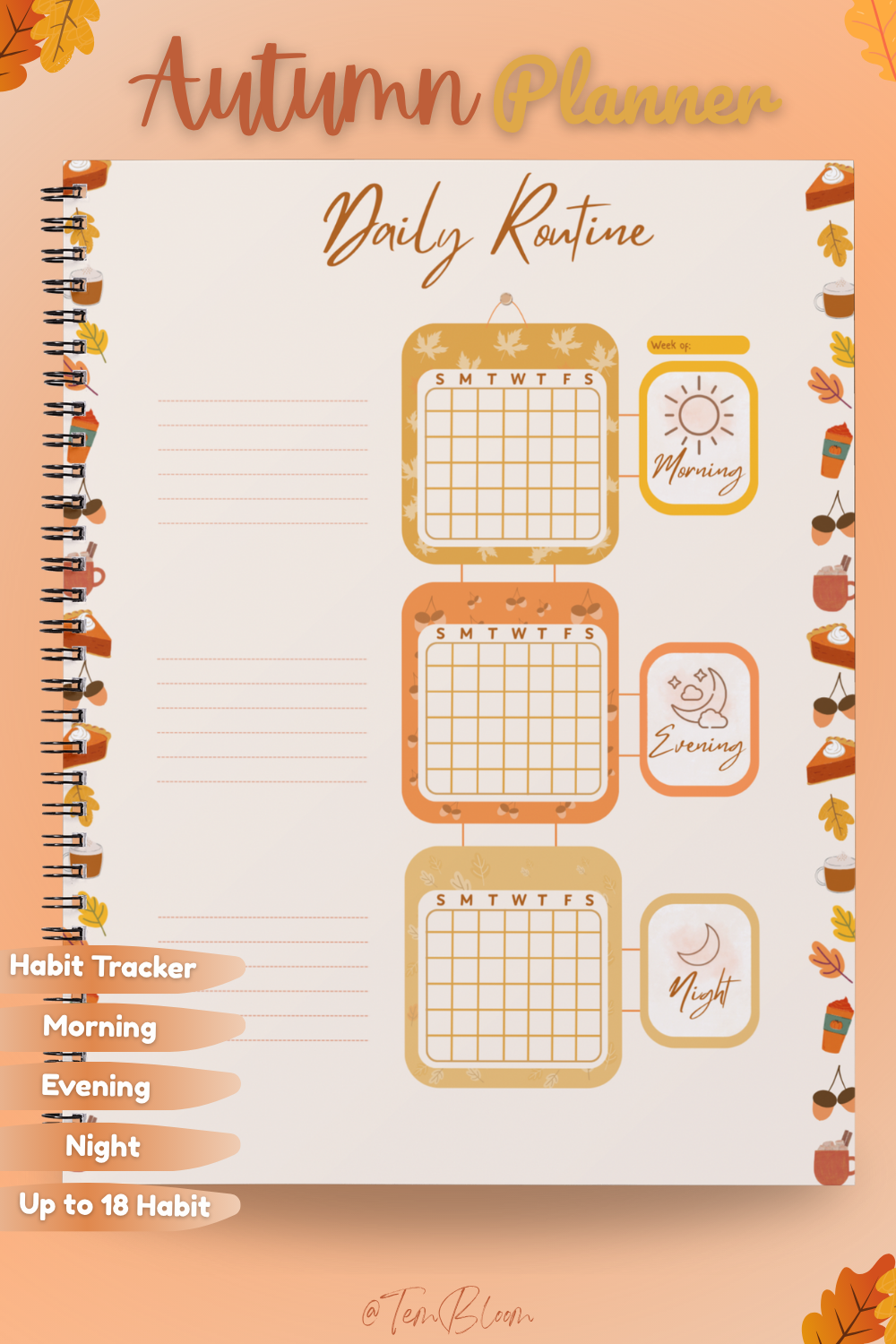 - Daily Routine Tracker: Build lasting habits with a Morning, Evening, and Night routine grid that helps visualize and stay consistent.