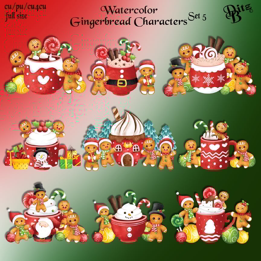 Watercolor Gingerbread Characters Set 5