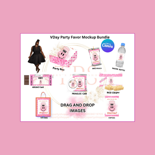 This template bundle includes our ready-made Party Favor templates, featuring Pink Valentine's Day themed party favor designs.