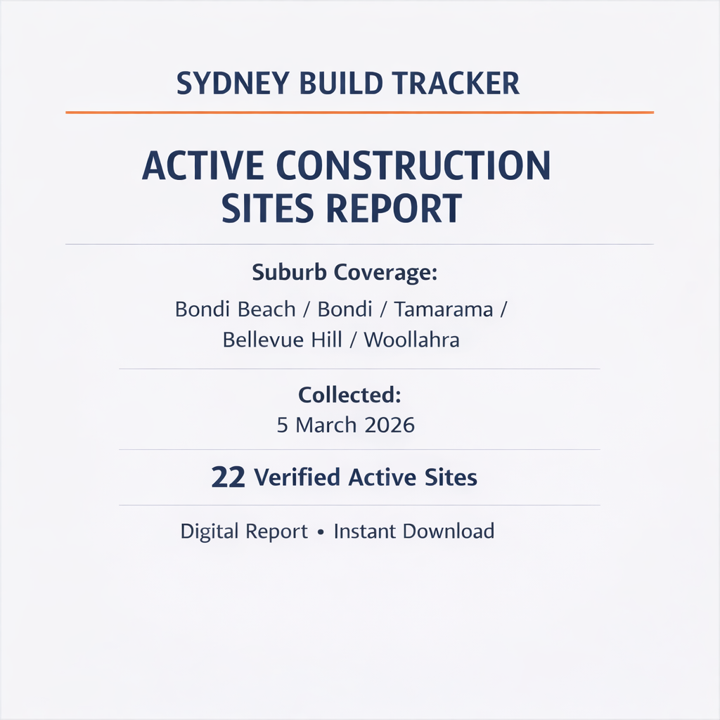 Bondi Construction Leads 22 Active Sites / Collected 5 March 2026