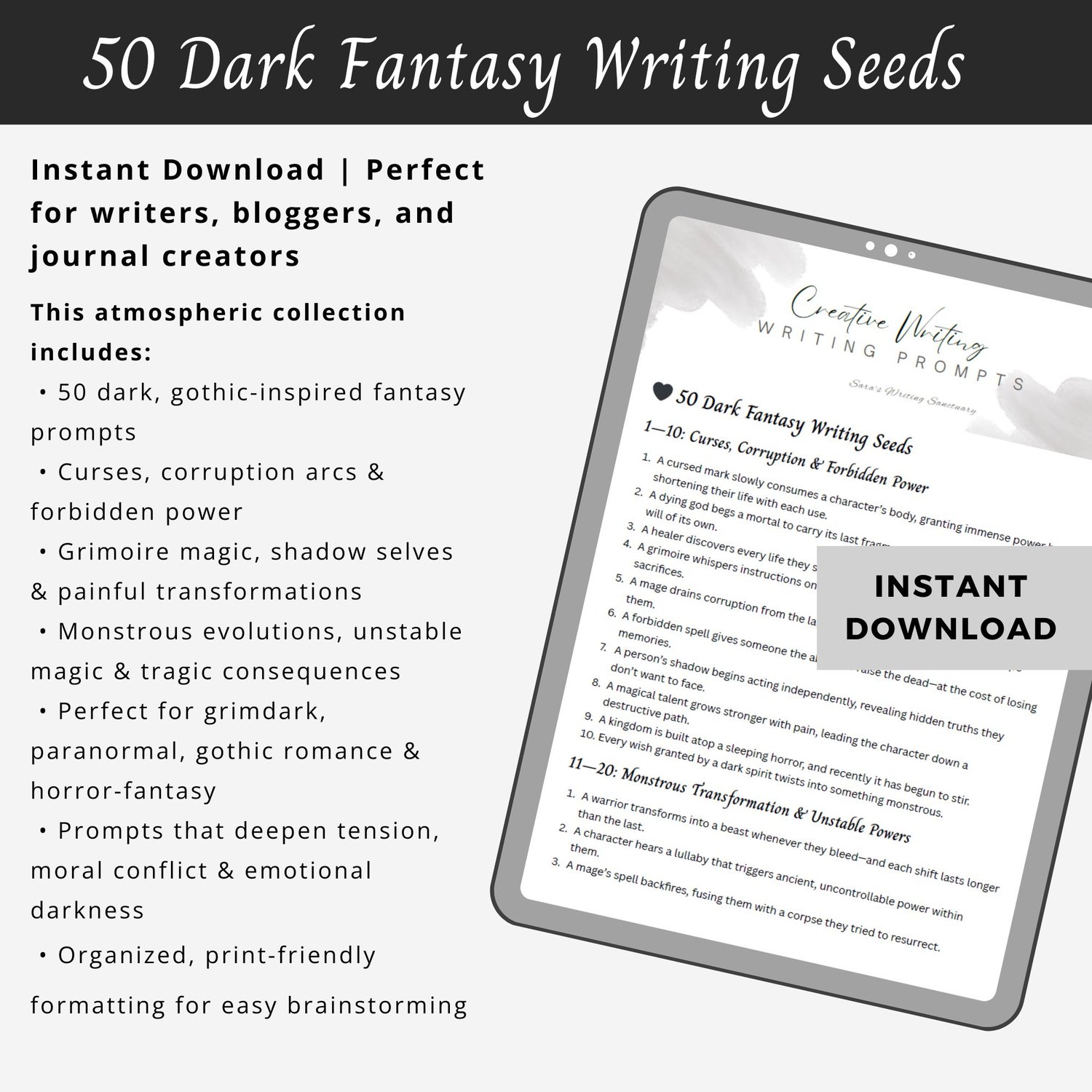 Whether you’re crafting an epic fantasy saga, a dark magical world, a paranormal mystery, or a romantasy series, this bundle gives you everything you need to spark your next story instantly.