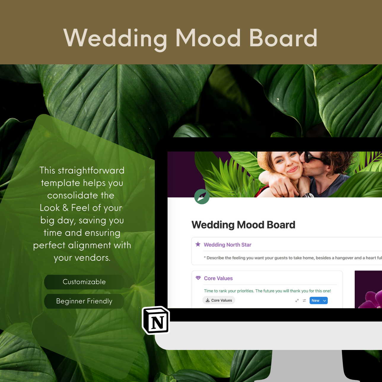 This template is perfect for any couple ready to start their planning journey with confidence. It transforms discussions and ideas into a clear, shareable vision of your wedding's look & feel, making communication with your entire wedding team effortless and joyful.