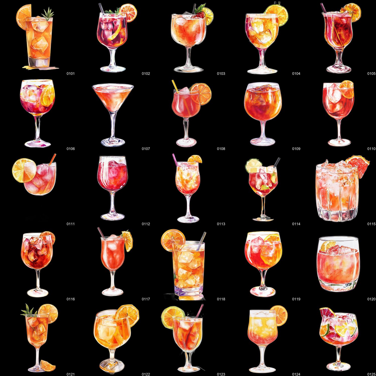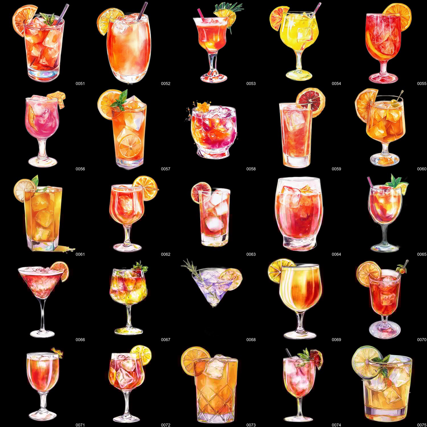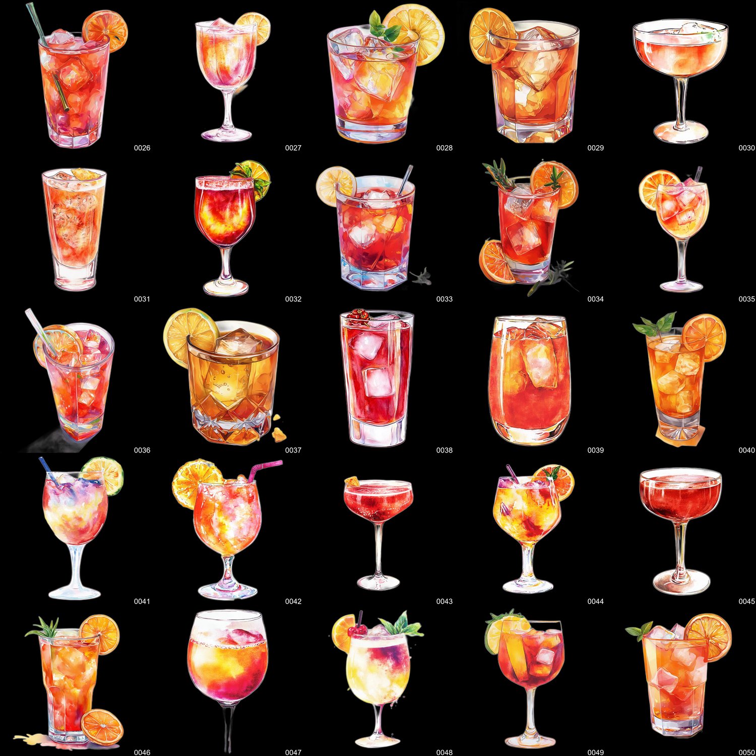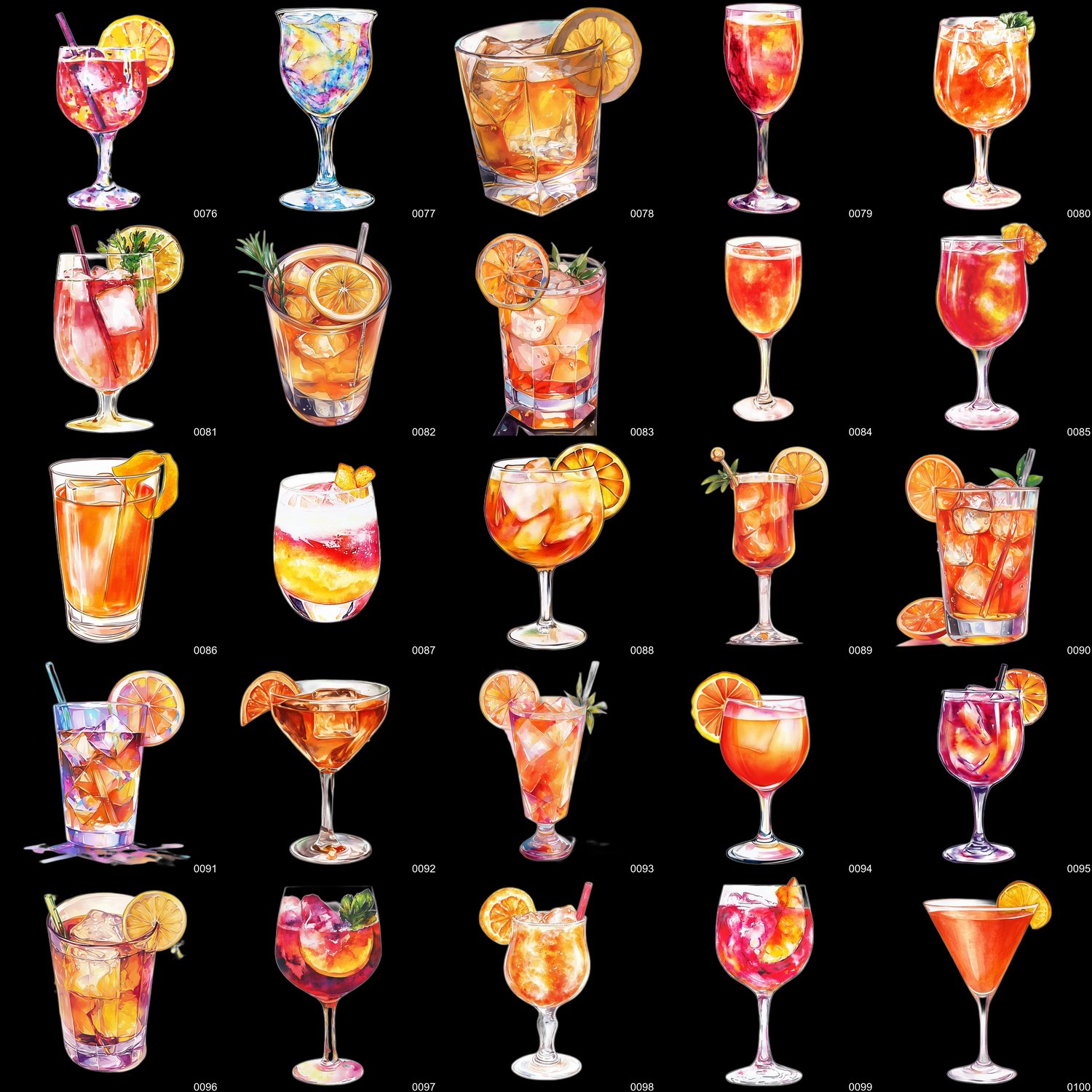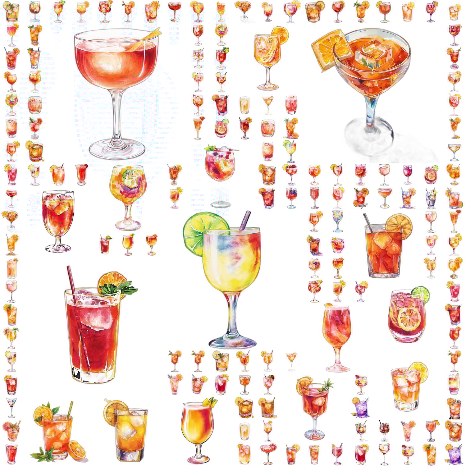 - 300 high-resolution PNG images of watercolor-style cocktails (transparent background)