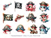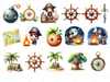 This adorable collection of nursery clipart features a crew of the Cute Pirate Clipart Bundle you've ever seen. Spark imaginations with a pirate graphics, a treasure-loving Pirate Parrot png, a Pirate Ship Clipart ready to explore, a toothy but not-so-scary Shark Clipart, a brimming treasure chest, and a charming Pirate Treasure Island – all designed in soft, huggable hues perfect for a little one's nursery.