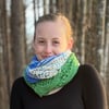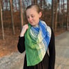 Cozy, squishy, and an addicting knit, the In a Mood Shawl is the perfect fall or winter shawl for when you want a bit of squish and color around wrapped around your neck. The design features two textures (garter and a simple mesh lace) that dance back and forth through the shawl as you change colors and play with shaping.