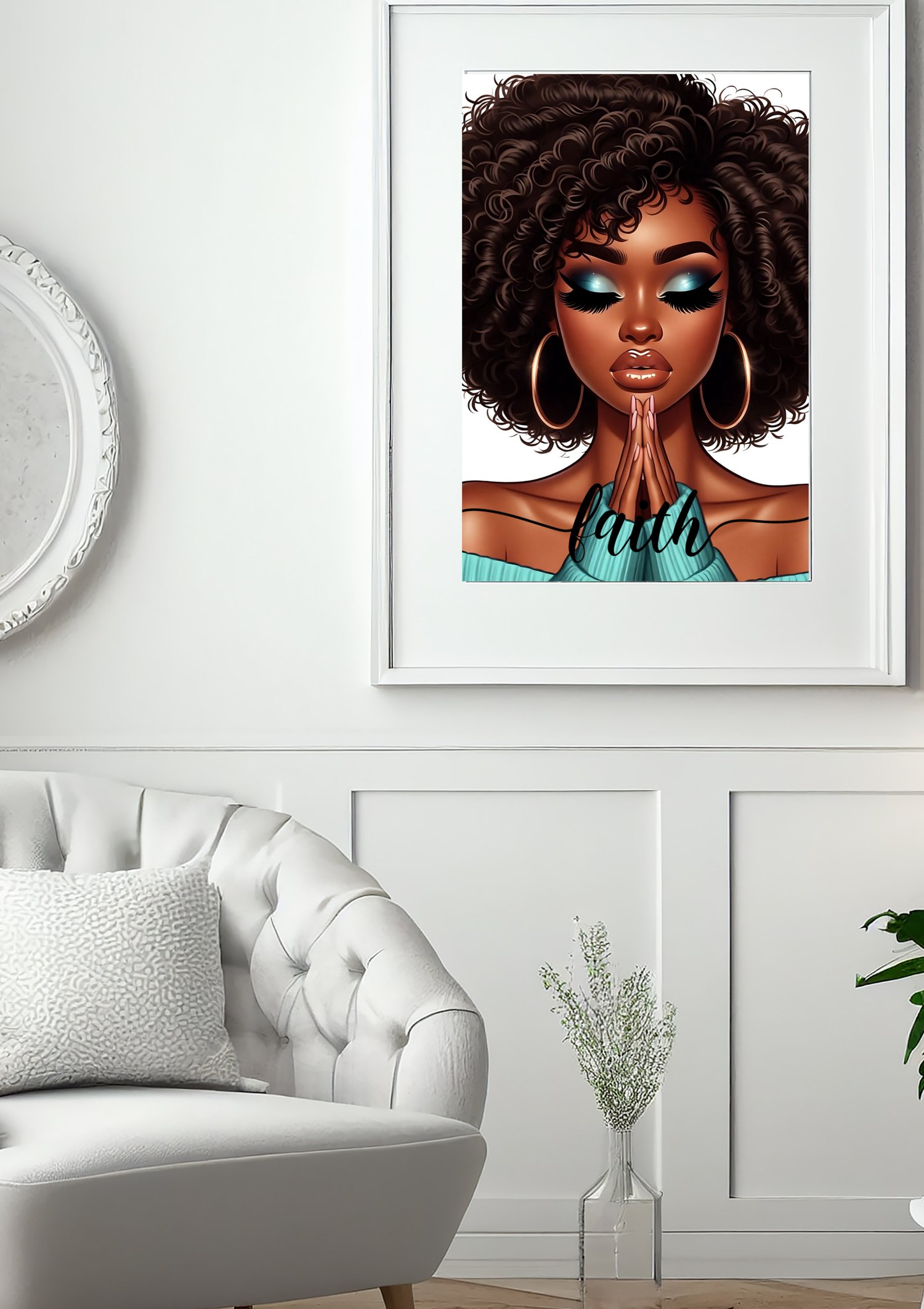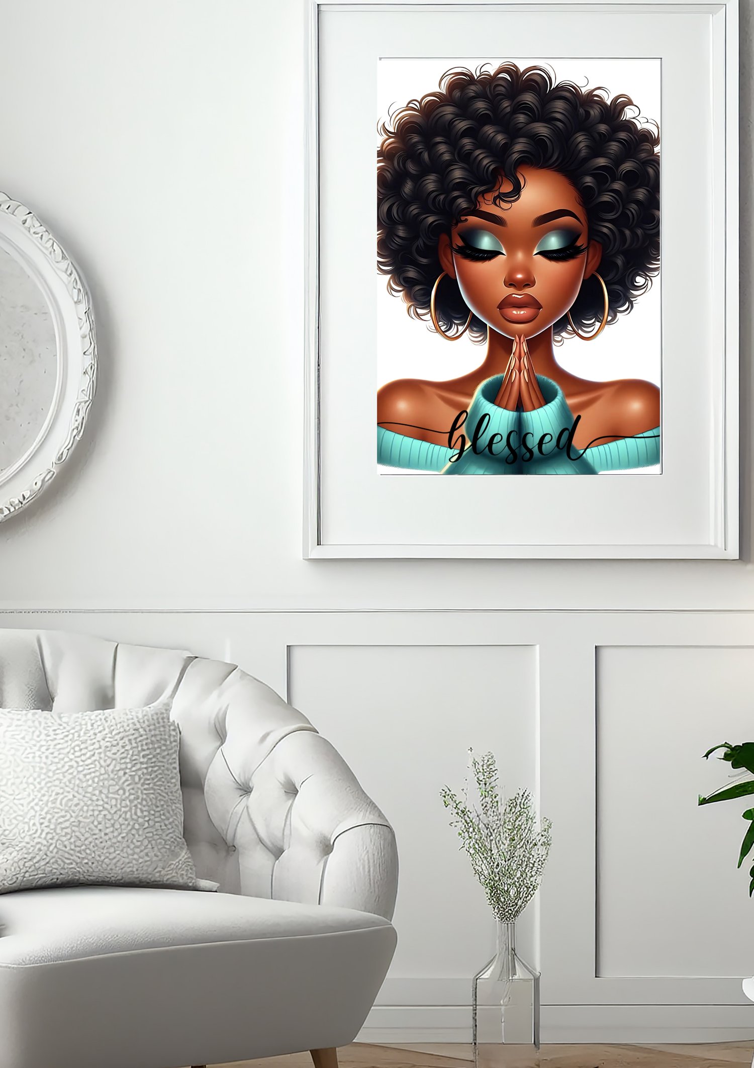 This collection features 9 high-resolution PNG illustrations of gorgeous Black women in prayer, each exuding peace, beauty, and power. Perfect for sublimation, wall art, apparel, and more.