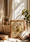 Against a pale, unassuming backdrop, its form seems suspended in time. The creature’s body glows in subtle shades—ochres, warm rusts, and soft siennas—an echo of coral reefs and deep-sea secrets. There is elegance here, but not without power; grace, but not without defense. The eyes, wide and knowing, hold a depth untouched by surface understanding.