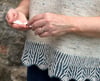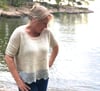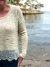 Brioche del Mar is worked in one piece, from the top down. Commencing with the back and then front neck, worked in the flat back and forth until arm holes are created. It is then joined in the round and knit down to the Brioche hem. You can shorten/ lengthen this garment by knitting less/ more body length before commencing the brioche hem. Try on as you go and adjust accordingly. Please note that extra yarn will be required if you knit the body length longer.
