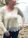 Now with instructions for long and short sleeves, with lots of cuff options (see below) Brioche Del Mar is the perfect combination of knitting to keep you engaged at the start, watch T.V. knitting the body, and then re-engage you for a two colour Brioche finish (the hem)!