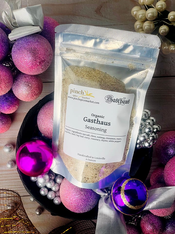 The Gasthaus Seasoning is a special blend of 12 organic herbs and spices that adds a special touch to your cooking of Gasthaus recipes. You can use it wherever you need salt and pepper.