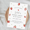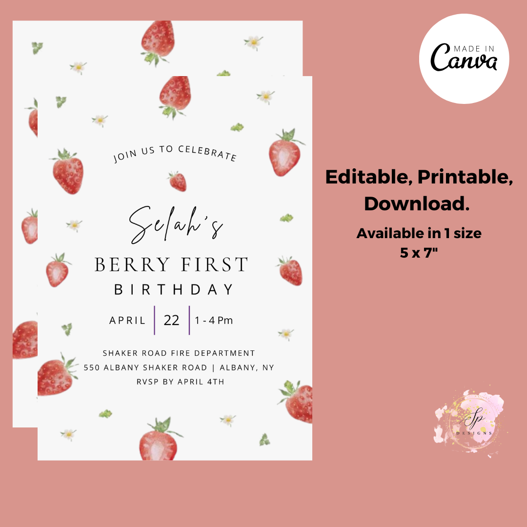 Editable Berry First Strawberry Birthday Invitation | Red Strawberry Birthday Invite | Berry Sweet Birthday Invitation Template | Instant Download