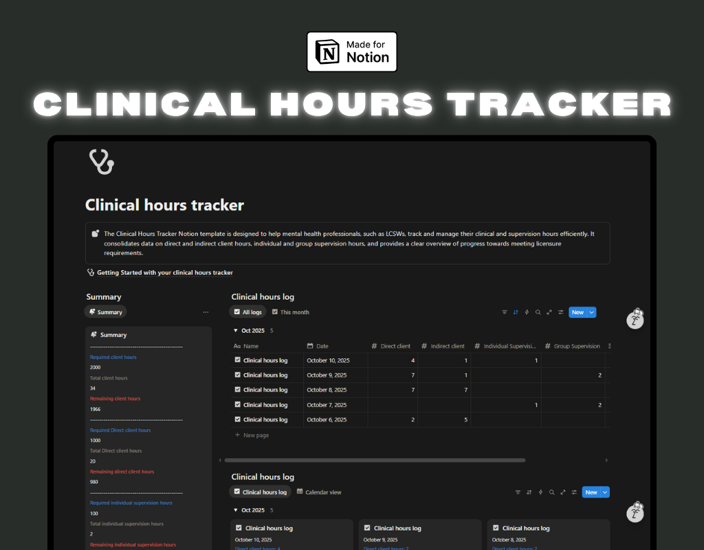 Clinical hours tracker - Notion template