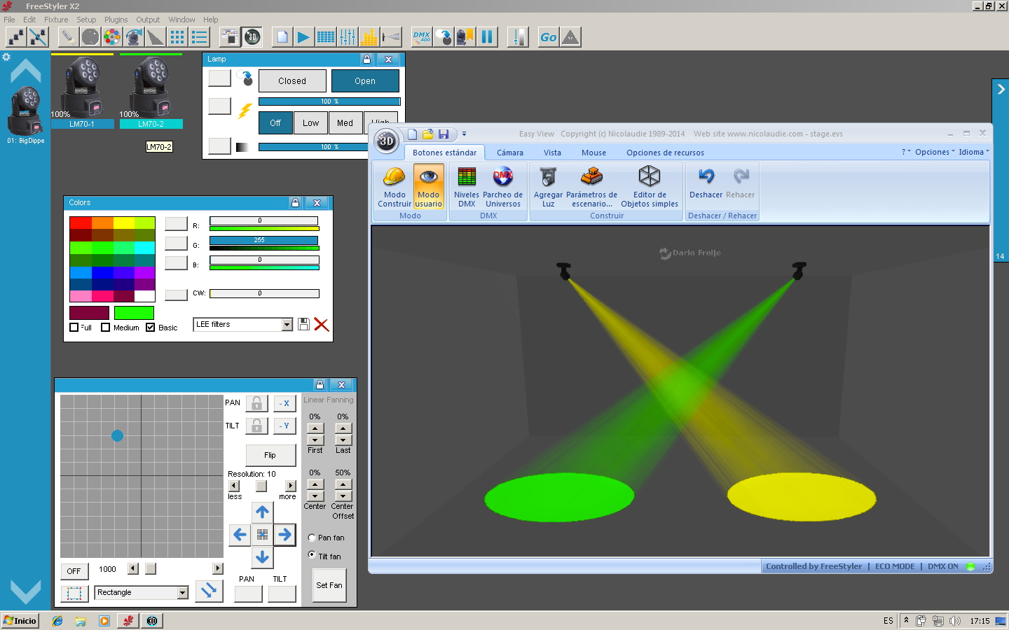 Si bien es un fixture de Sunlite al fin de cuentas, no garantizo el funcionamiento 100% con Sunlite Suite 2 para controlar equipos. Sólo está probado con Magic 3d Easy View.