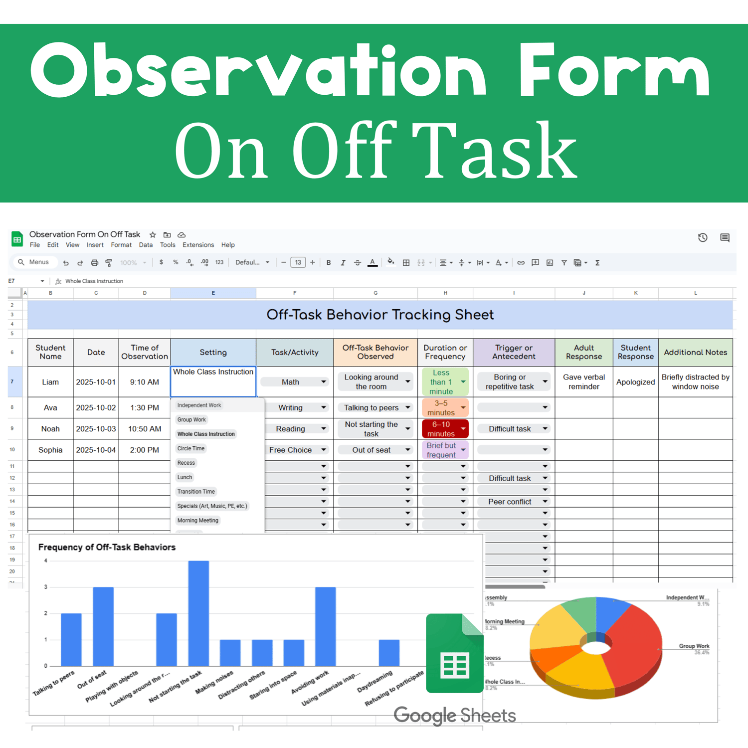 Observation Form On Off Task Behavior Tracking Google Sheet Template