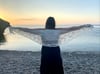 The shawl is knitted with lace yarn but the beads provide a reassuring weight to the drape, so your shawl sits nicely in place around your shoulders.