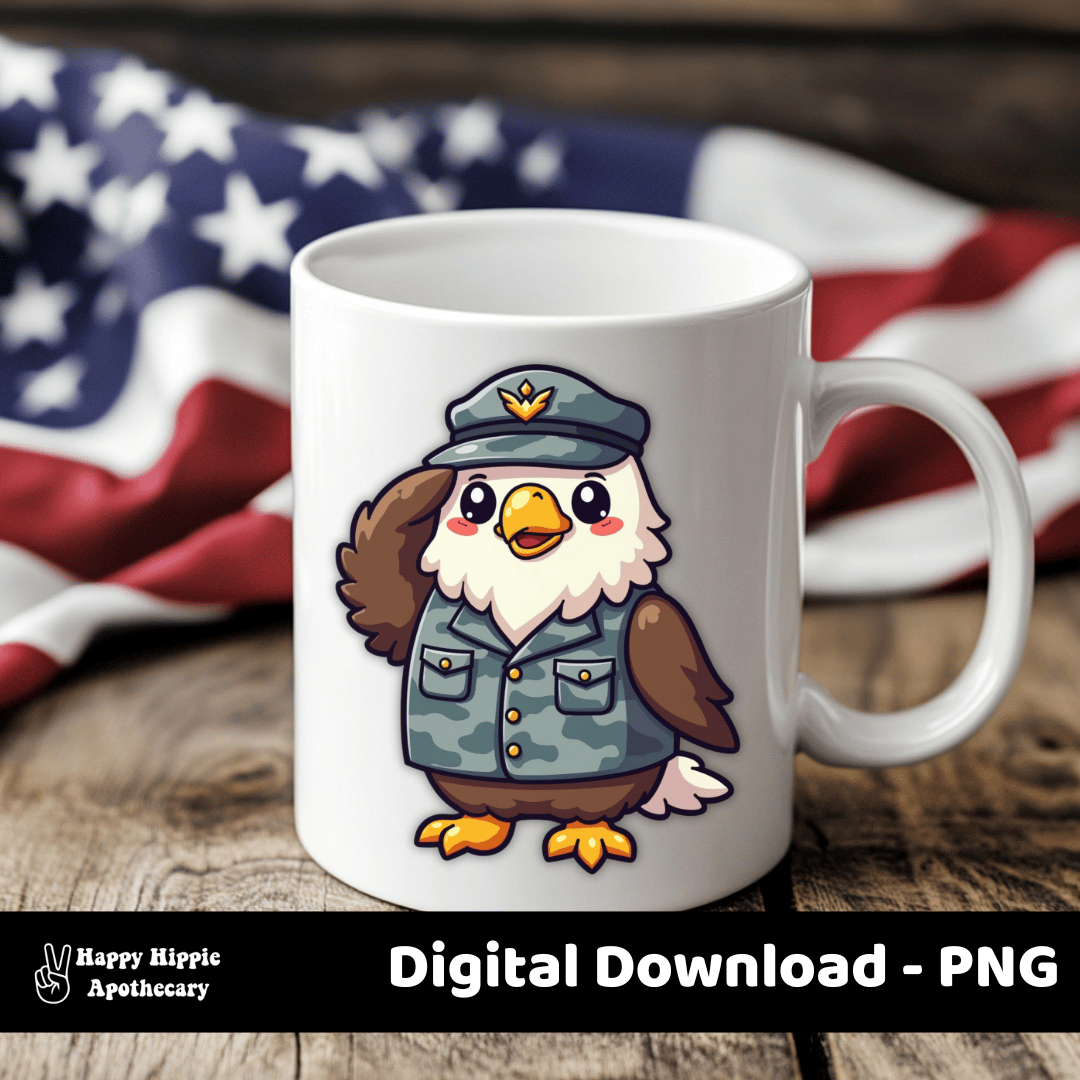 Military Eagle PNG | Veterans Day Clipart | Patriotic Bald Eagle Sublimation Design for Crafts, Shirts, and Mugs