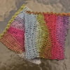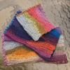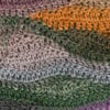 Verkürzte Reihen und lange Farbverläufe ergeben statt Streifen eher Wellen. Das Muster sieht aus als hätte es sehr viele Reihen, manche davon sind jedoch nur einige Maschen lang.