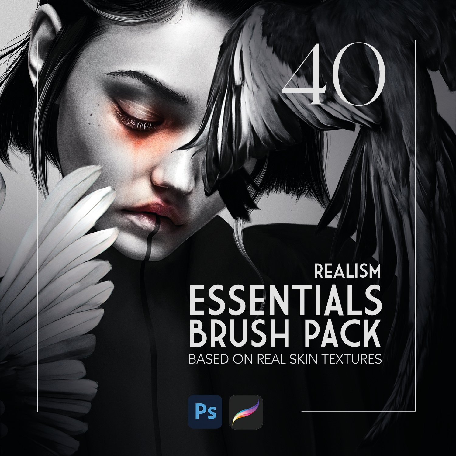 Here you have 40 of my personal portrait brushes in one pack + additional video tutorial about how I use them to create realistic-looking skin.