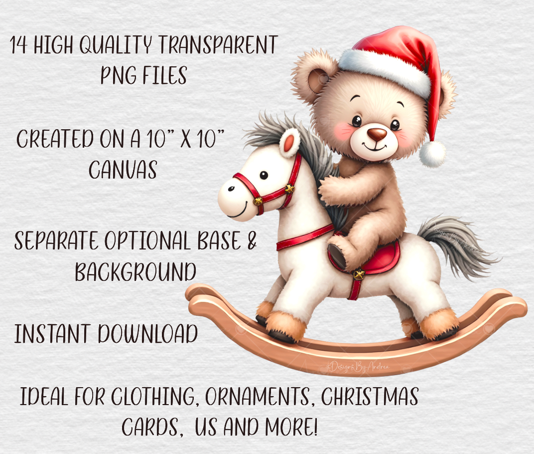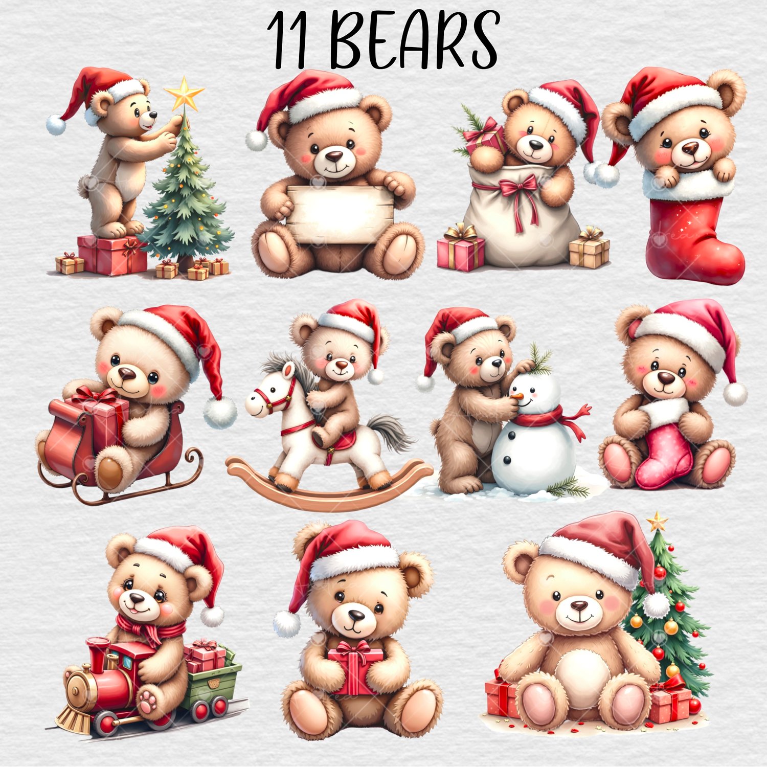 Busy Christmas Teddy Bears. 11 bears with optional background and tree files. 14 PNGs. Sublimation, print, DTF etc. Instant Download
