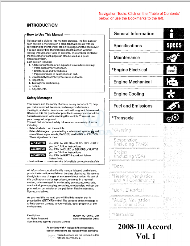 2008 2009 2010 Honda Accord Service Manual
