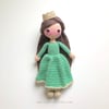 Emerie the Emerald Princess is a member of Sweet Softies’ Darling Dolls Series. This pattern provides instructions for crocheting Emerie, a beautiful young princess wearing a removable royal crown and a long-sleeved dress that goes down to her ankles. She is a very sweet girl and can easily be customized using different yarn colors and added embellishments, such as buttons, lace, appliques, and more. She makes a lovely gift for little girls, who can have lots of fun styling her hair as well!