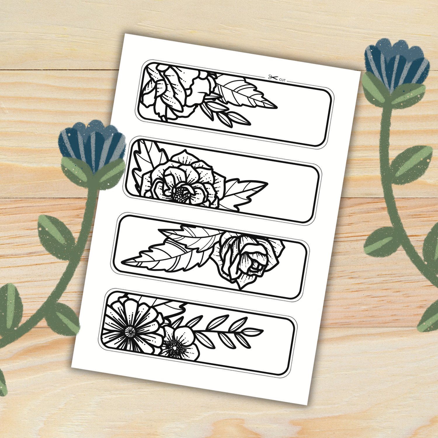 This listing includes 1 printable craft page that will allow you to make your own floral bookmarks.