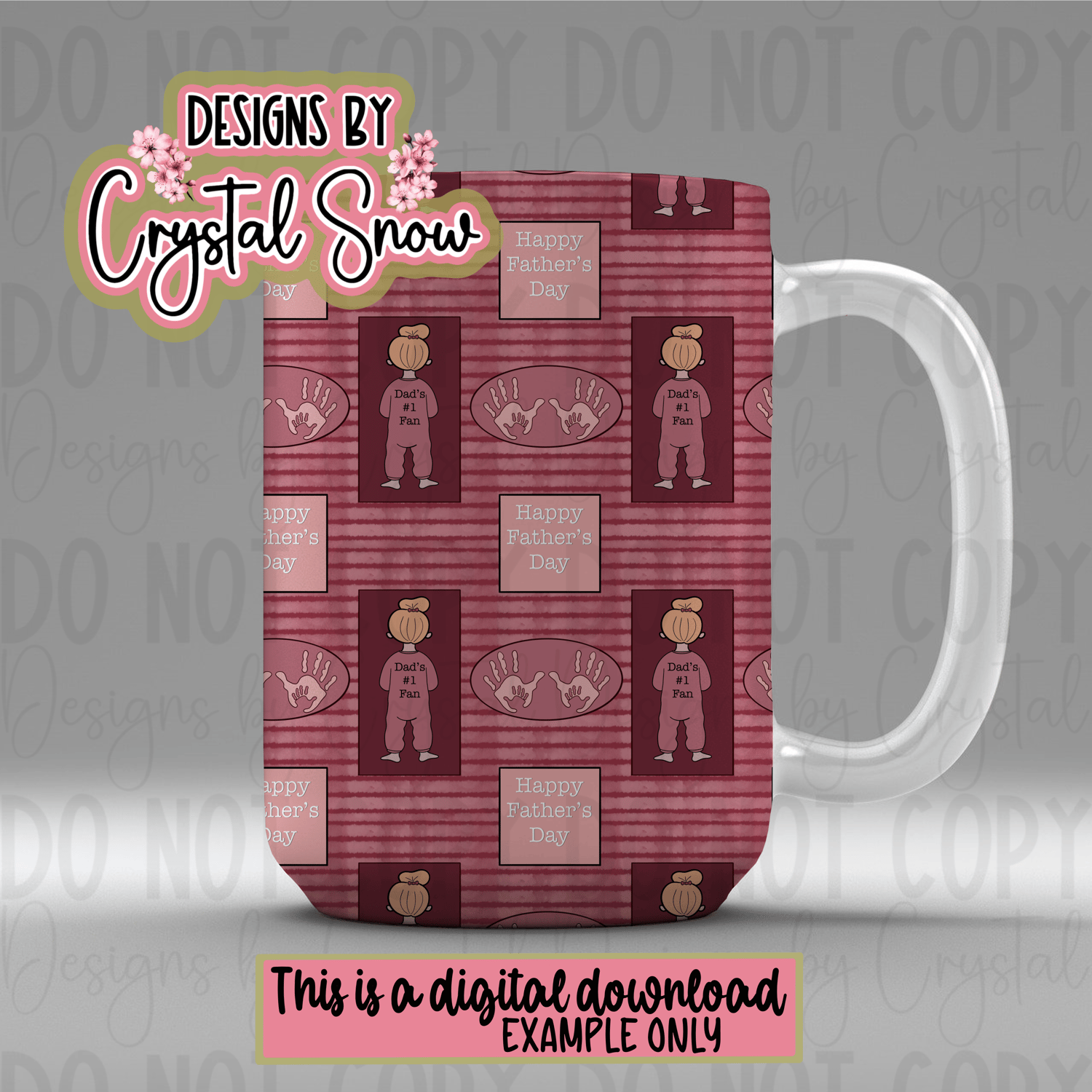 This adorable seamless pattern is perfect for Father's Day crafts, sublimation projects, cards, and custom gift items. Featuring a little girl in cozy pajamas with "Dad's #1 Fan" on the back, paired with handprint art and soft watercolor textures, this hand-drawn design adds a sentimental touch to any creative project. Whether you're designing for apparel, scrapbooks, or digital gifts, this pattern brings love and warmth to every inch.