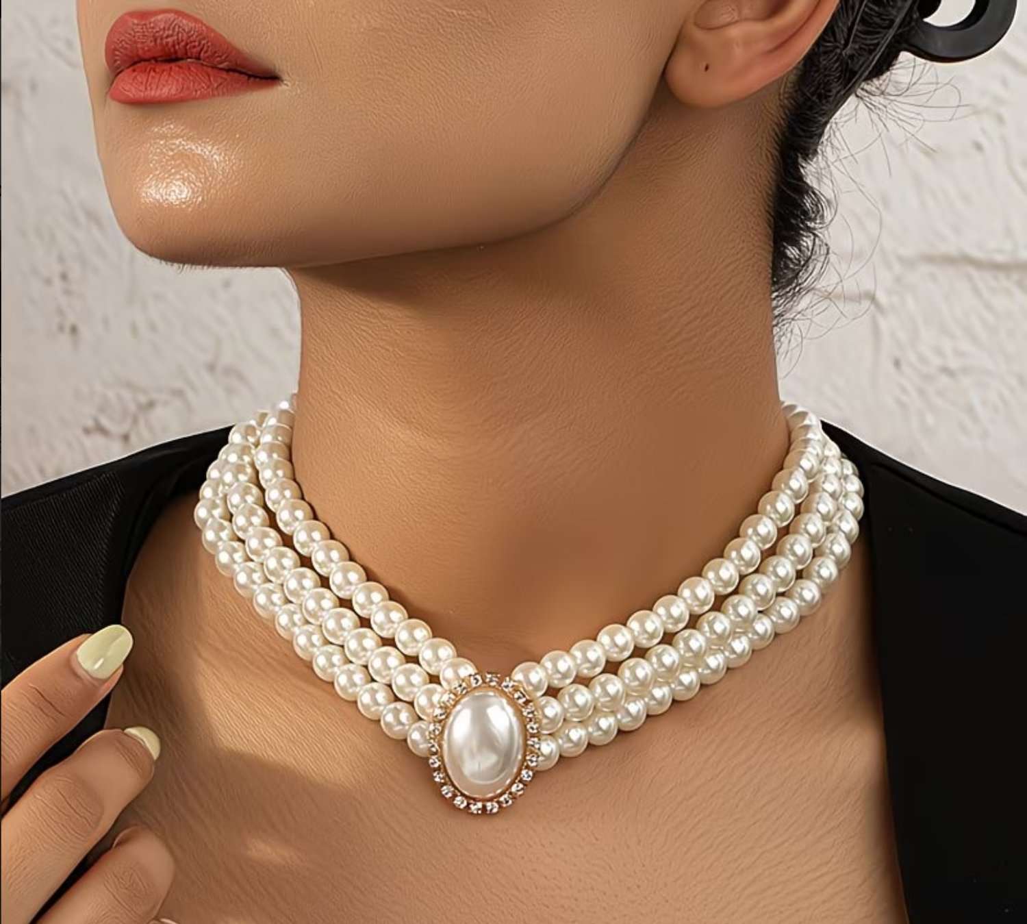 Vintage Pearl Choker Necklace – Elegant Multi-Strand Pearl Statement Necklace