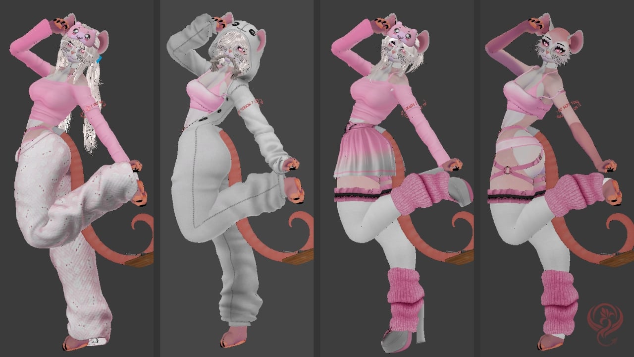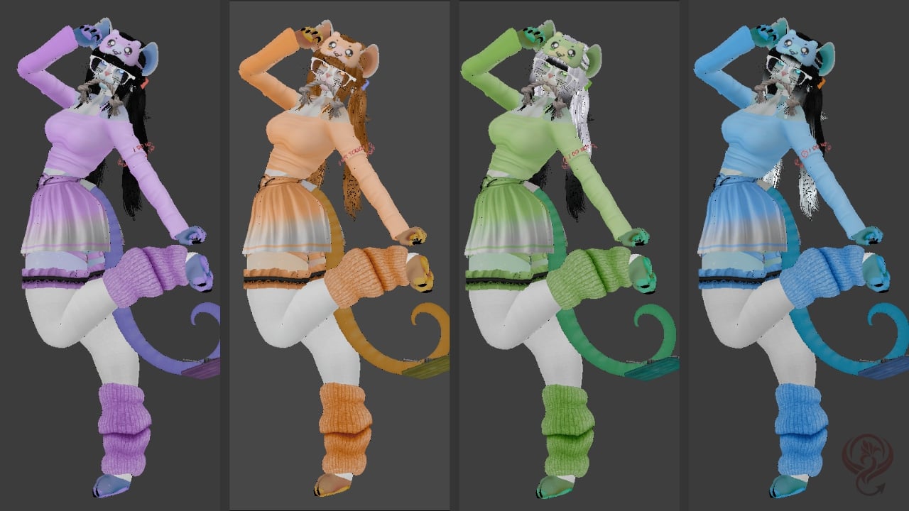- Each Part of the clothes can change colour separately (tops/lowers/socks/bodysuit/jackets)