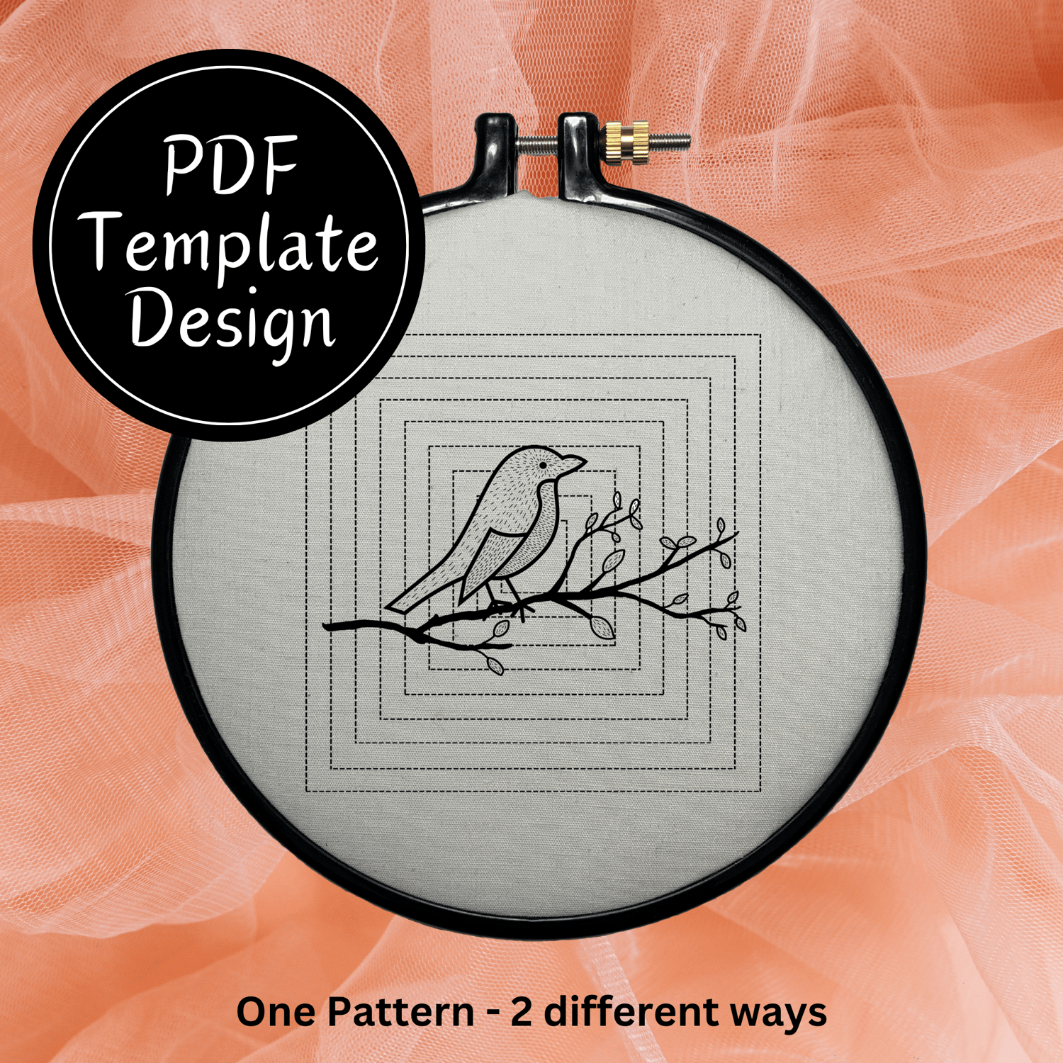 Bring the beauty of traditional Indian kantha embroidery into your needlework with this printable pattern featuring a charming bird on a branch design. Inspired by Indian saris, this hand-drawn pattern allows you to recreate the delicate kantha running stitch technique on any fabric.