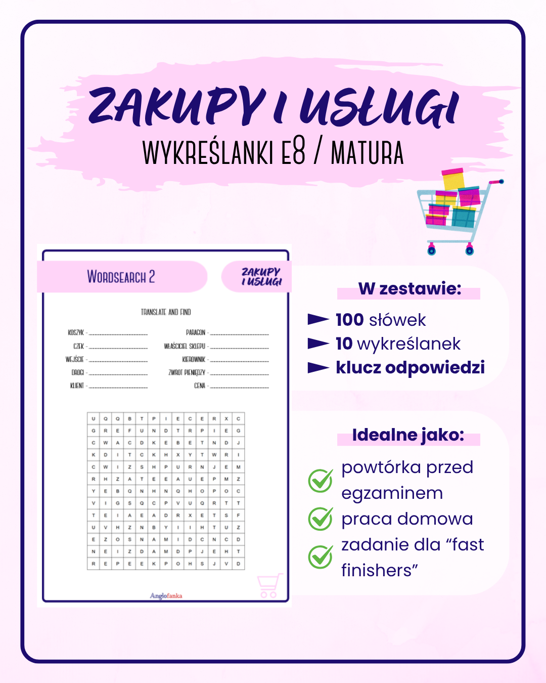 📘✨ Potrzebujesz szybkiego, angażującego materiału do powtórki słownictwa z działu ZAKUPY I USŁUGI?