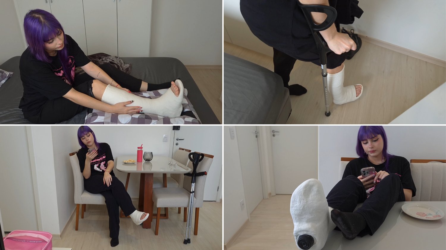 - Wiggling toes, walking on crutches + cast heel, eating snacks, relaxing with legs up and using cell phone.