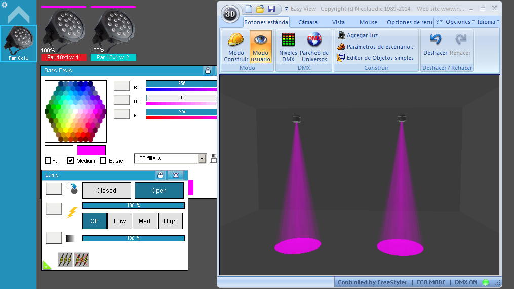 Esta Librería SSL2 está optimizada para trabajar con Magic 3d Easy View. Es decir para ver una representación 3D de las secuencias que estemos realizando con Freestyler, QLC+ o cualquier otro soft que se conecte con Magic 3d.
