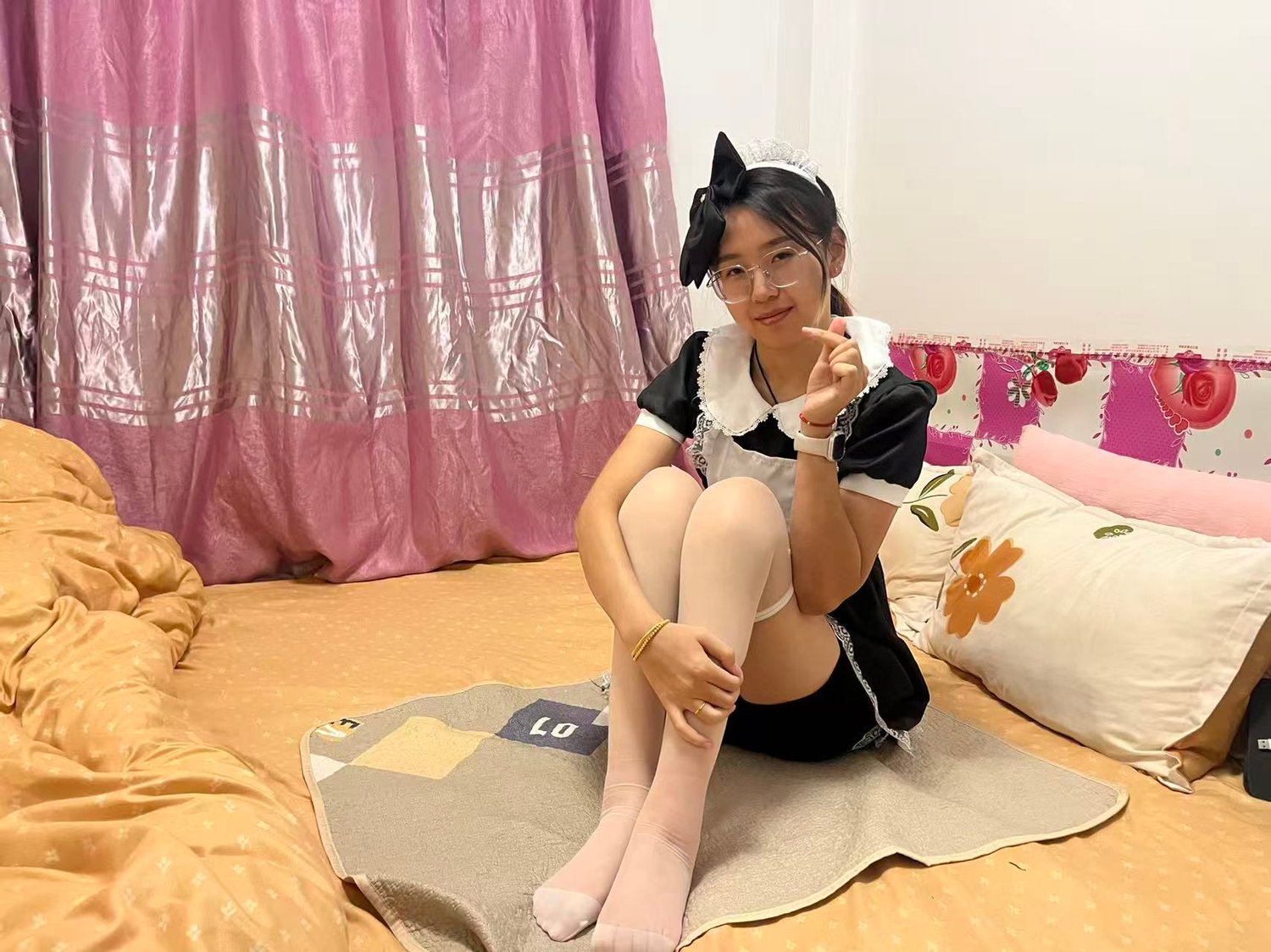 Zoe was dressed in a pretty maid outfit today, looking adorable and charming. Unfortunately, she couldn't go anywhere and could only move around on the bed. And because she was incontinent, she couldn't leave the diaper pad and could only move around on it. However, this still couldn't dampen her enthusiasm.