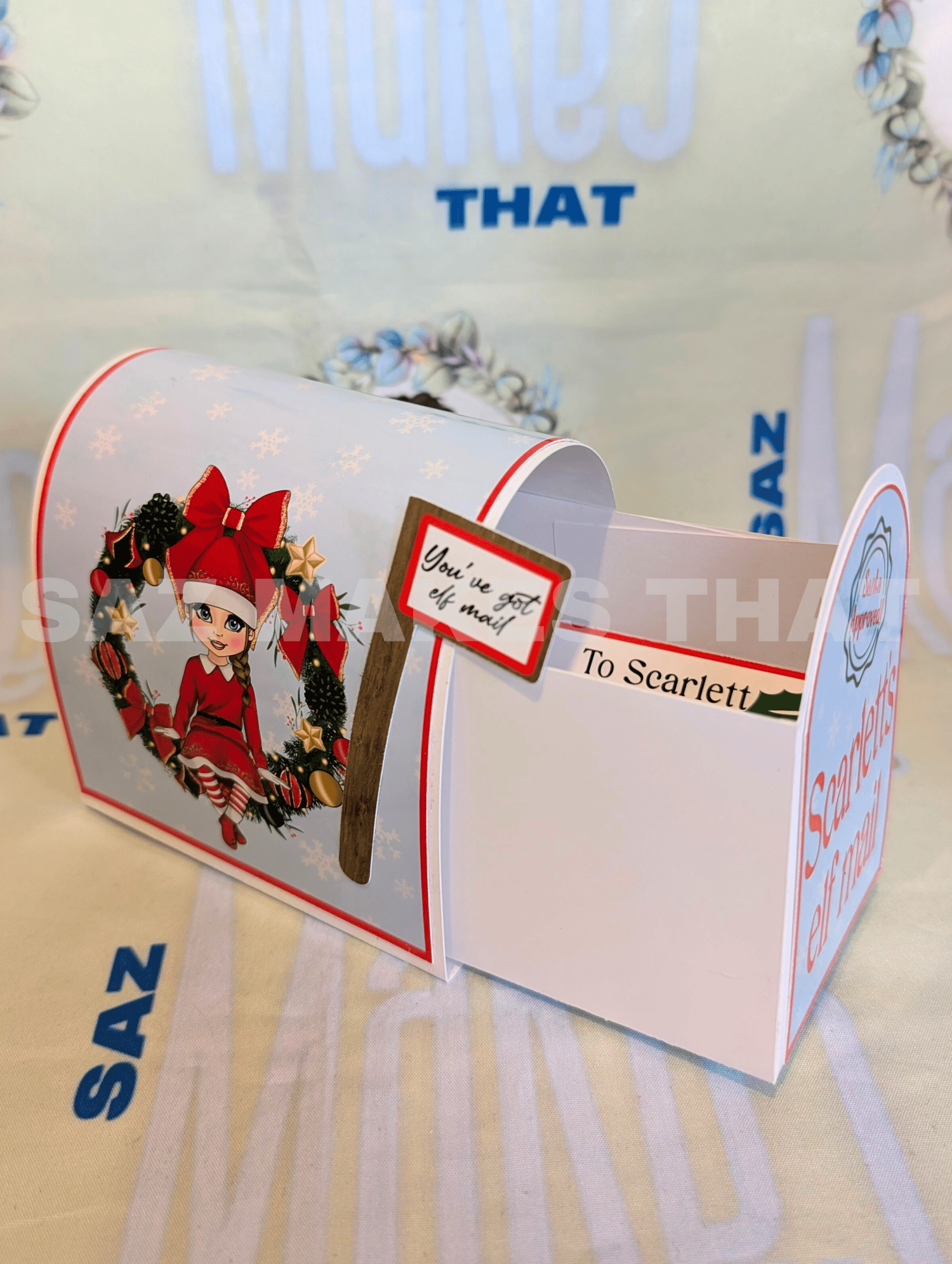 the file includes the mailbox and template for the note card that you can personalise with images and text for print then cut or just cut from plain or patterned card.