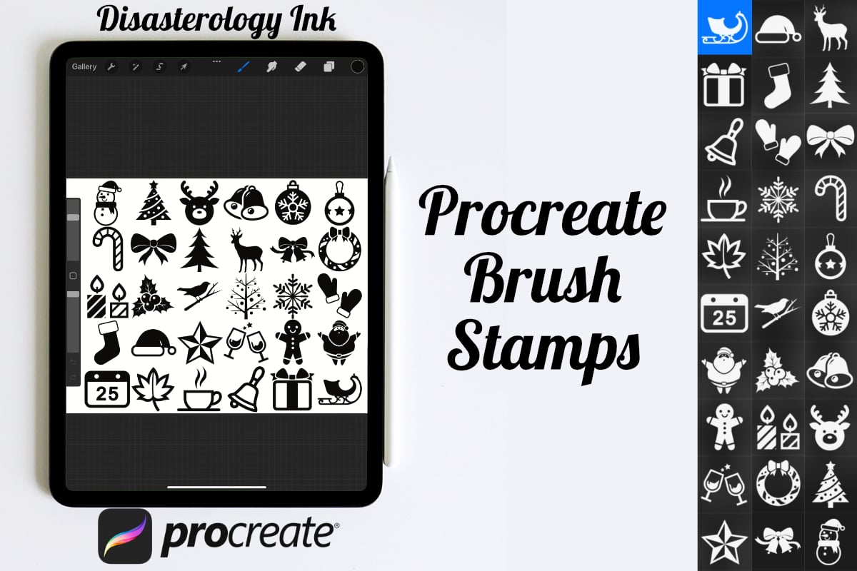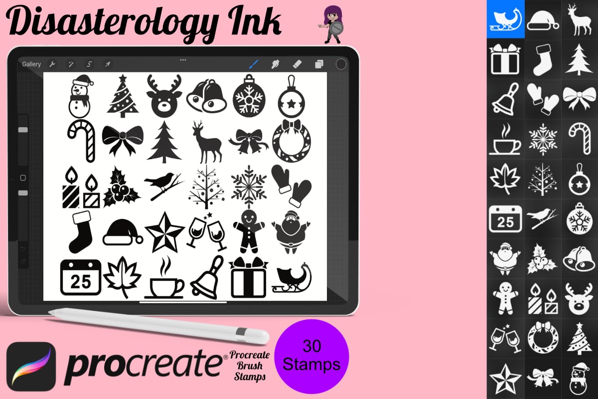 Christmas Winter Elements Procreate Brush Stamps Set 2, 30 Christmas Stamps