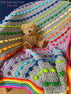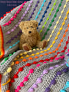 This fun blanket has been designed to be easy to make, with as few ends as possible. It is a corner to corner design, meaning that you work from one corner of the blanket diagonally up to the opposite corner.