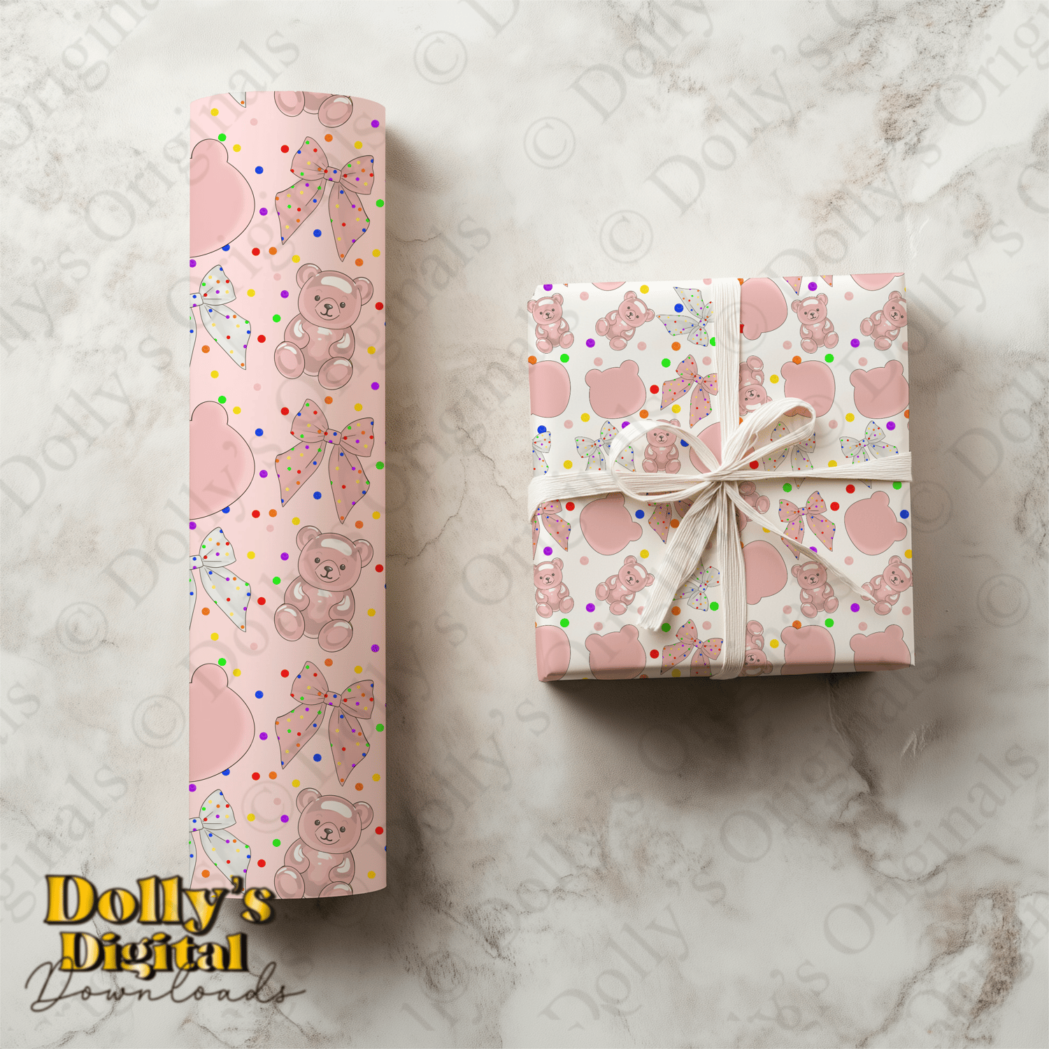 Includes Four Blush Spotty Bear Seamless Patterns Clipart PNG (4 PNG’s)