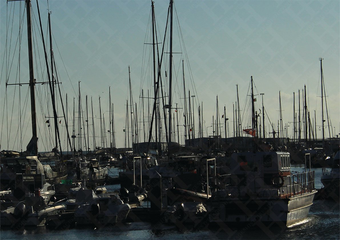 An artistic view of the port of Figueira de Foz in Portugal. The sun scorches the moored boats, creating a contrasting play of light and shadow that will complement your interior design. Whether you're looking for a classic or designer look, this artistic and geometric composition will fit perfectly.