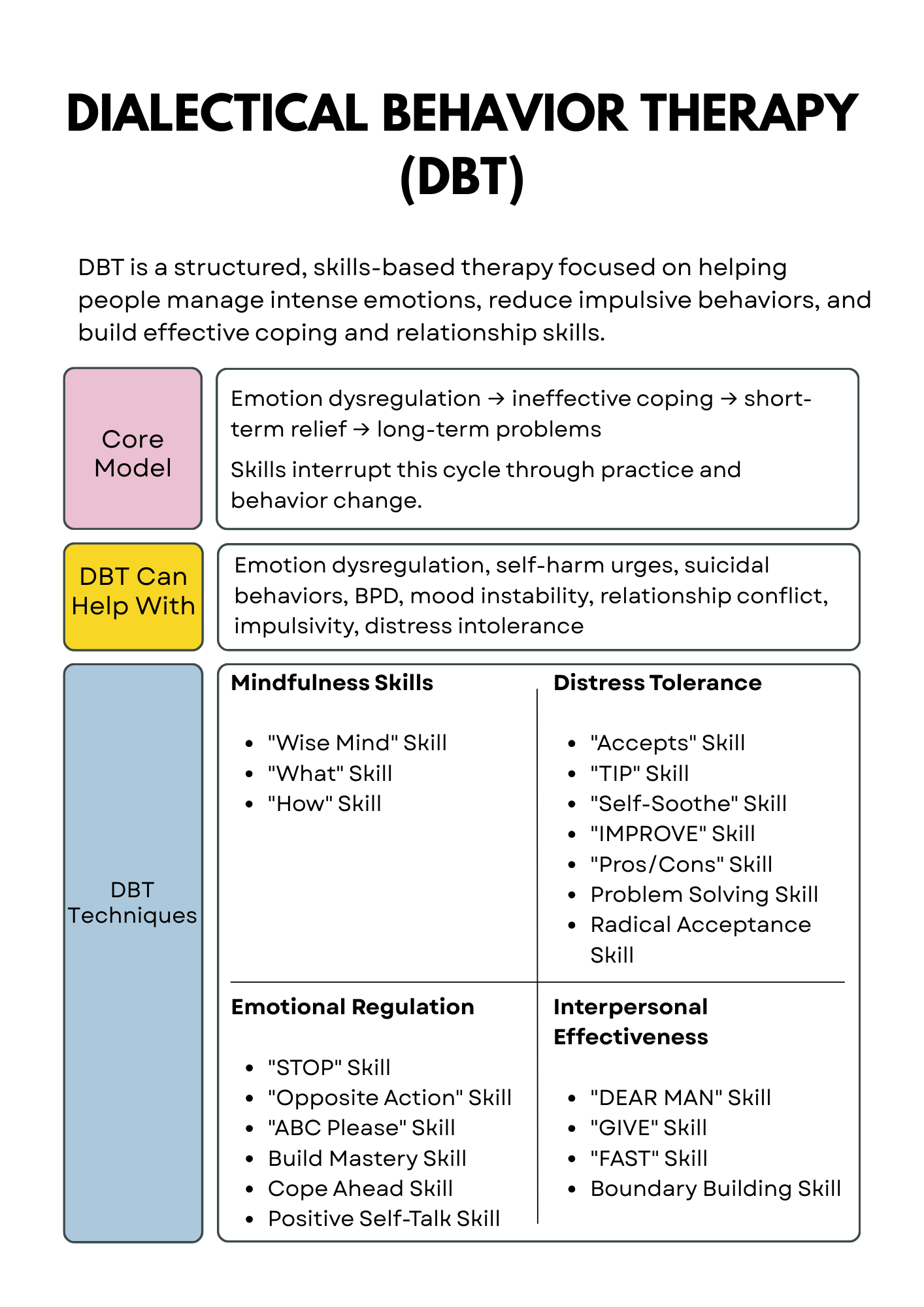Dialectical Behavior Therapy (DBT) Worksheets